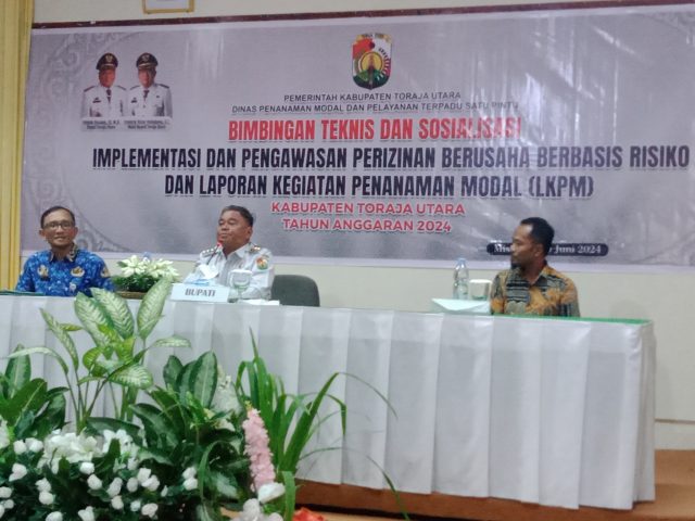 TORAJA UTARA- Dinas Penanaman Modal Pelayanan Terpadu Satu Pintu (DPMPTSP) Kabupaten Toraja Utara melaksanakan Sosialisasi Pelaksanaan Monev MPP Tahun 2024 dan Peraturan Daerah Kabupaten Toraja Utara Nomor 4 Tahun 2022 tentang Pemberian Insentif dan/atau Pemberian Kemudahan Investasi. Kegiatan tersebut dilaksanakan di Ruang Pola Perkantoran Marante, Kantor Bupati Toraja Utara Kamis (11/07/2024) . Kegiatan Sosialisasi dibuka oleh Sekretaris Daerah Toraja Utara,...