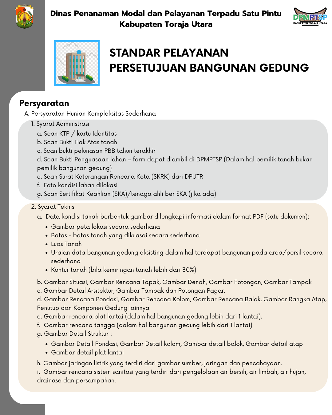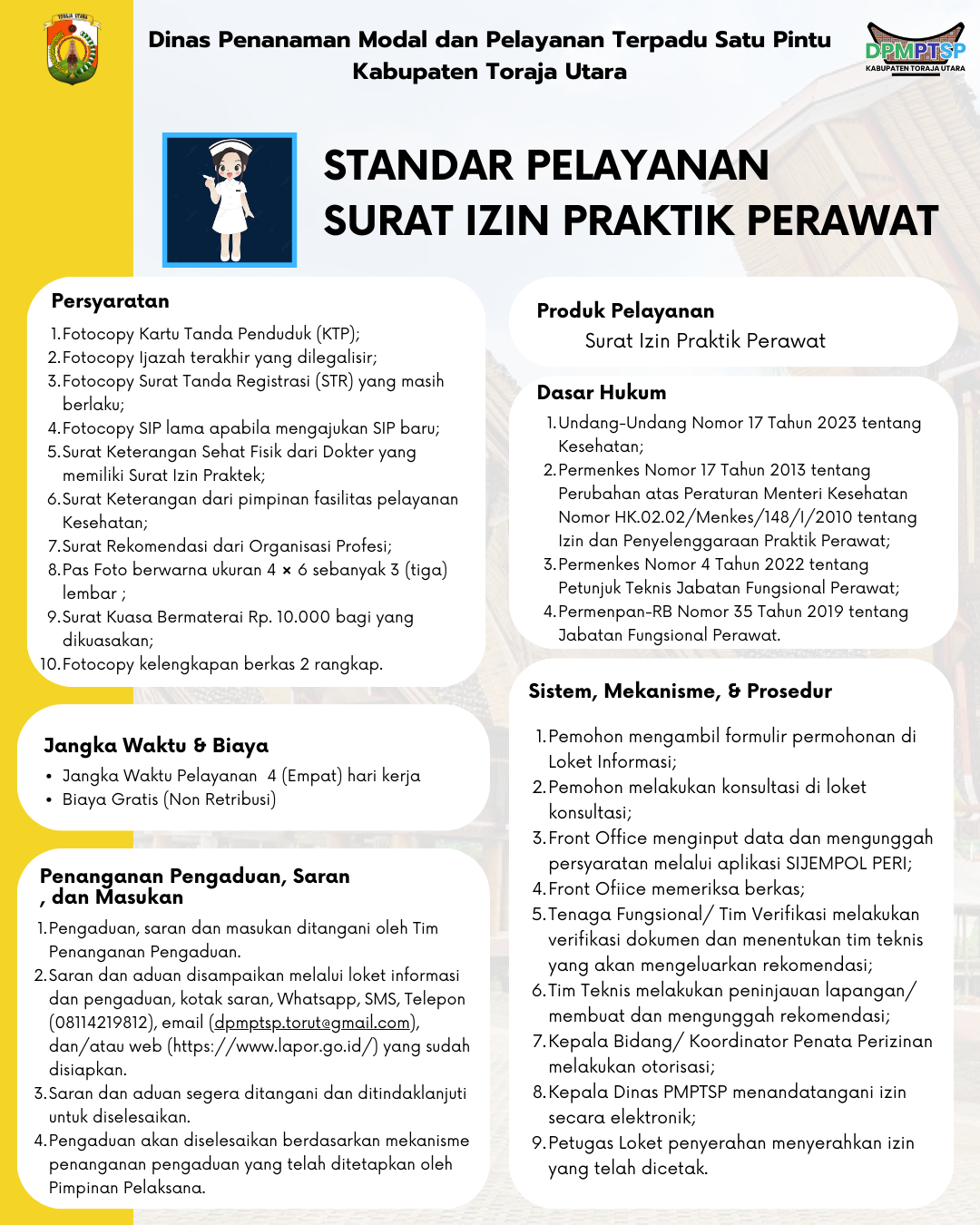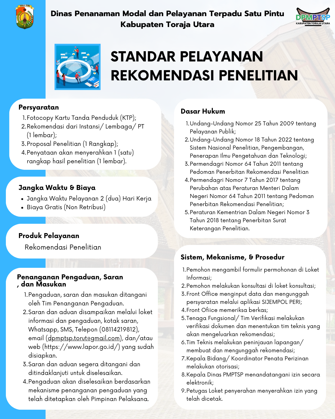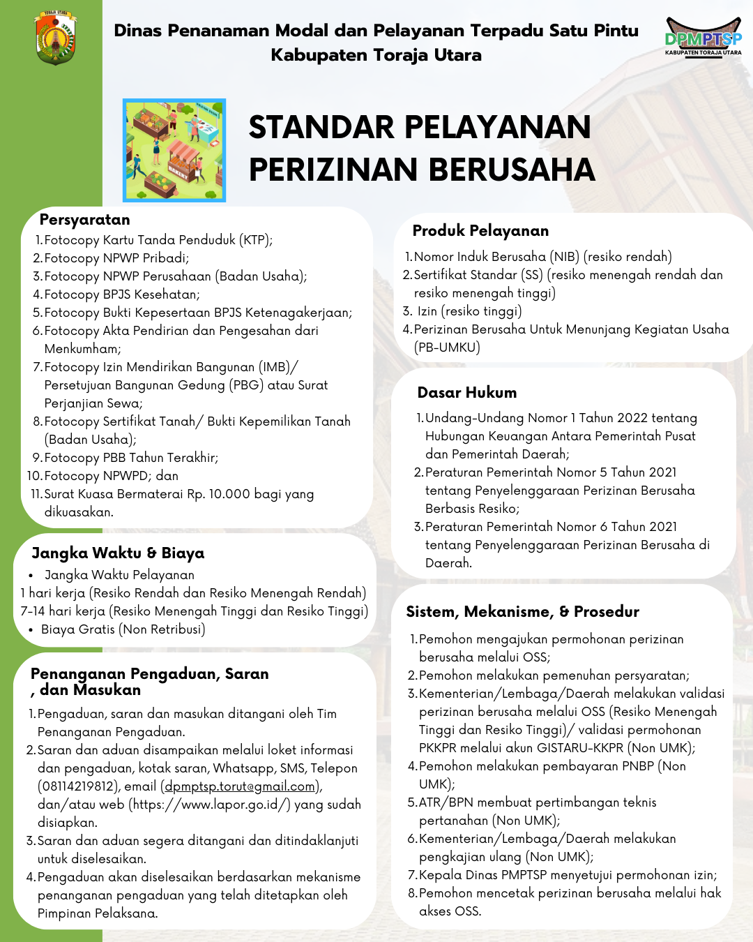 Pamflet Standar Pelayanan terhadap Izin yang paling sering dilayani di DPMPTSP Kabupaten Toraja Utara