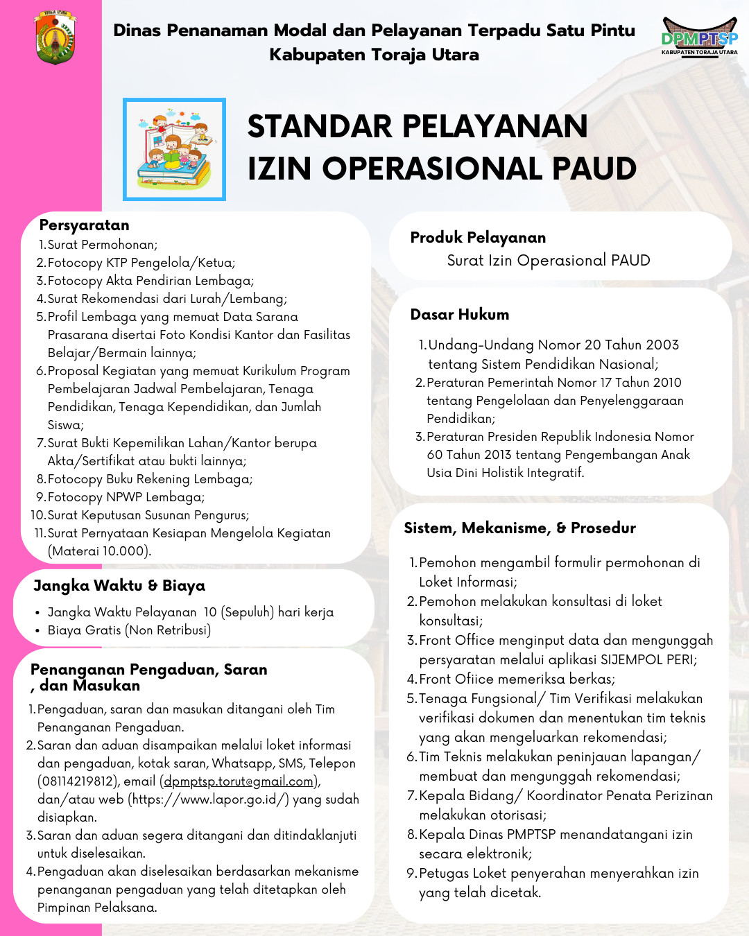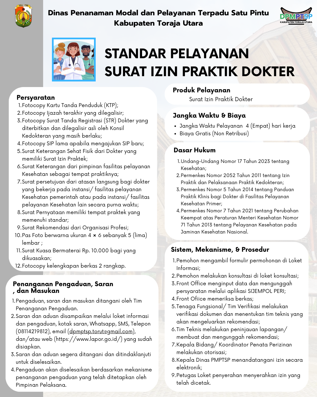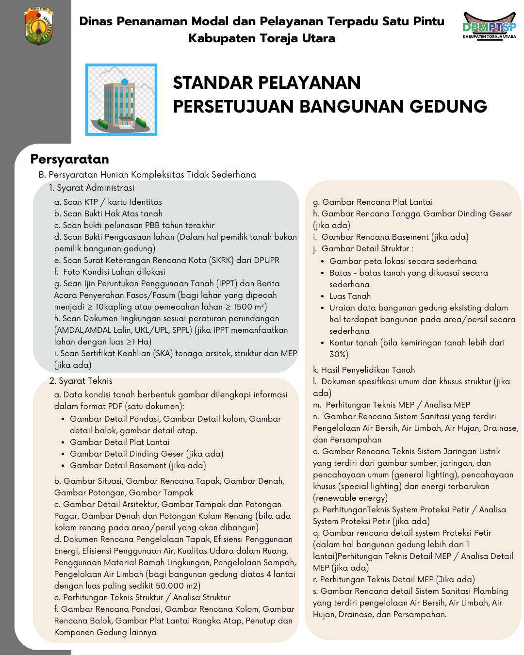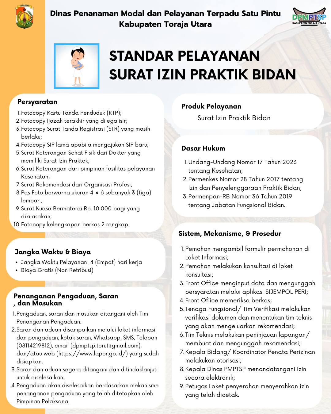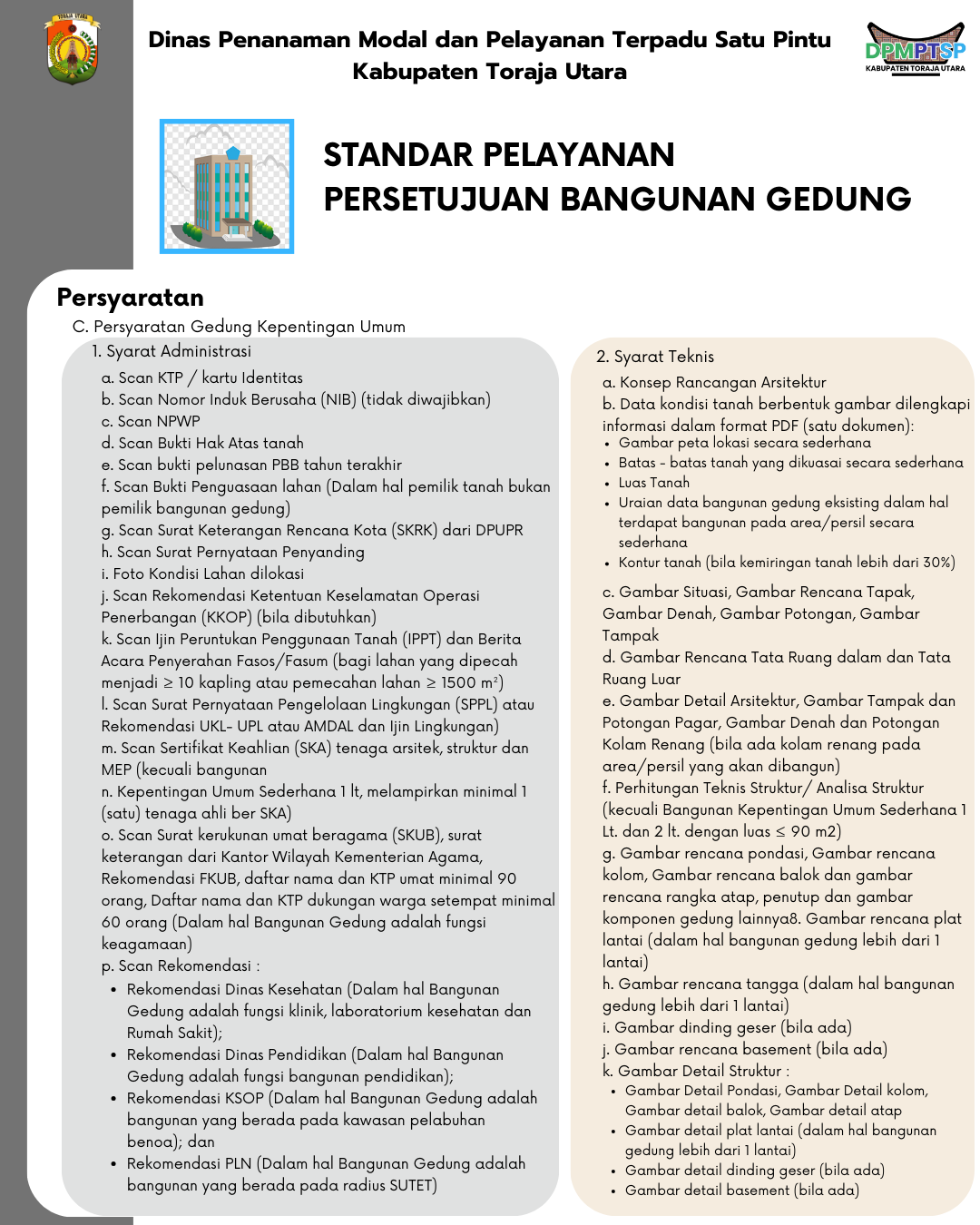 Pamflet Standar Pelayanan terhadap Izin yang paling sering dilayani di DPMPTSP Kabupaten Toraja Utara